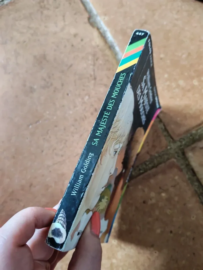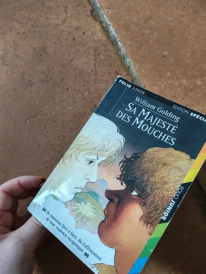 Sa Majesté des Mouches, livre de William Golding, éd. Folio junior, édition spéciale, 320p., 2000, 190g. Livre au format poche, en bon état général, pliure sur la couverture et quelques coins cornés. #samajestedesmouches #williamgolding #foliojunior
