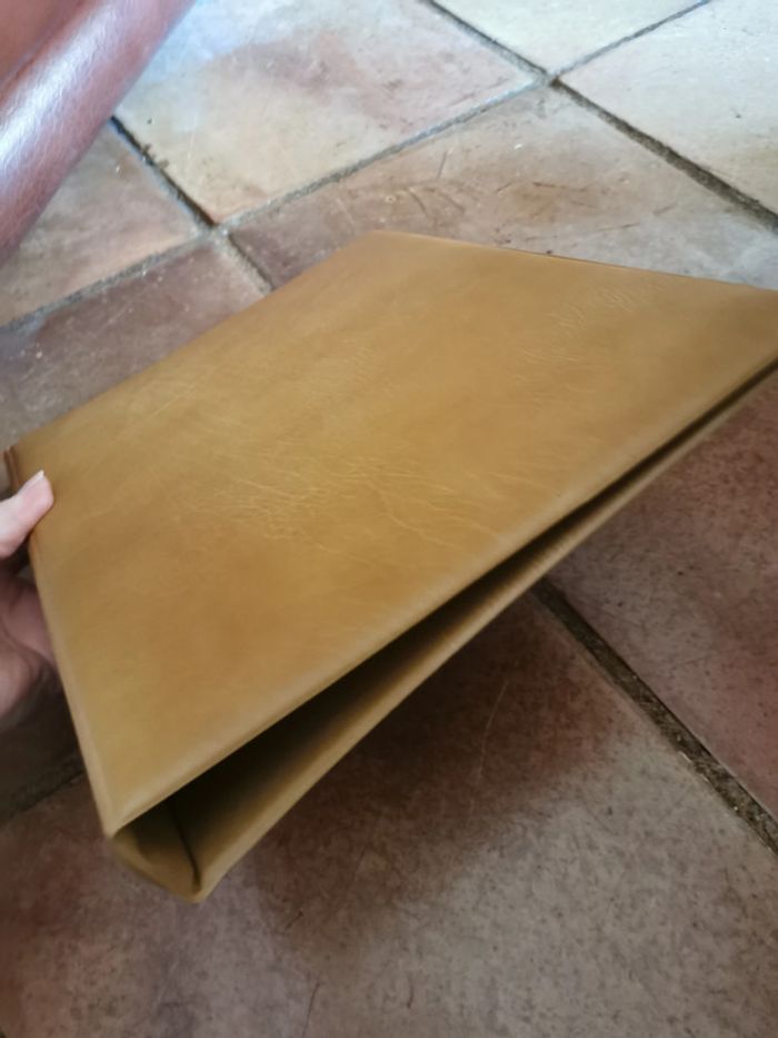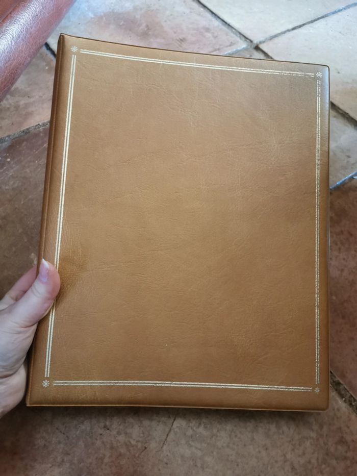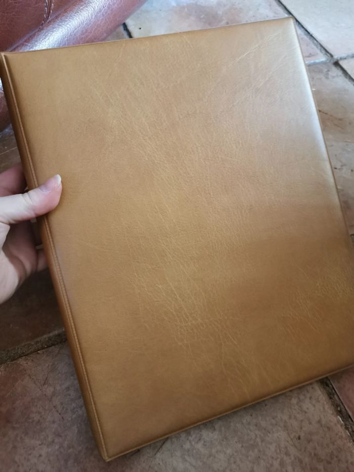 Classeur beige vintage Sveb, en très bon état. Classeur avec de la dorure devant devant est légerement rembourré, matérieau type simili cuir. Taille : 32x25x3,5 cm, poids 548g. #classeurbeige #classeur #classeurvintage #sveb