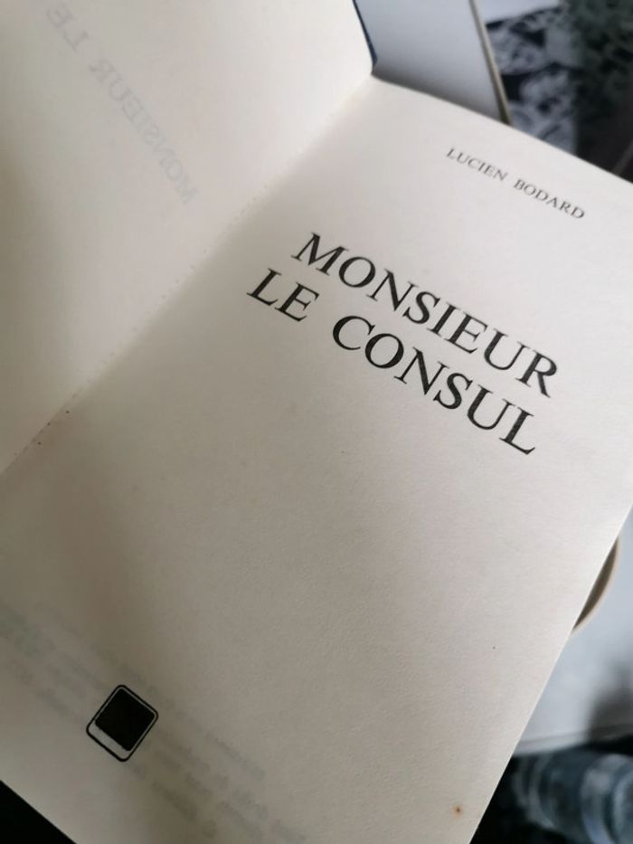 Monsieur le Consul, livre de Lucien Bodard, éd. Grasset & Fasquelles, 1973, 541p., 587p. Livre au format broché, couverture rigide, en bon état général, la tranche est marquée par les taches de jaunissements.