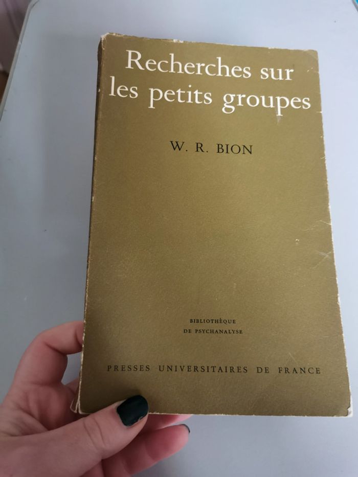 Livre au format relié, couverture en papier, Rechercher sur les petits groupes, livre de W.R. Bion, éd. Presses Universitaires de France, 1965, 140p., 169g. Livre est en bon état général, comporte de l’usure classique comme jaunissement, une petite déchirure au niveau de la tranche. Reste assez RARE. #petitsgroupes #wrbion