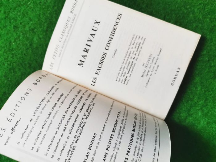 Marivaux, les fausses confidences, éd. Bordas 1964, col. Les petits classiques de Bordas, 127p., 84g. Petit livre de poche, couverture souple, en très bon état, compte tenu son ancienneté. #marivaux #lesfaussesconfidences #bordas