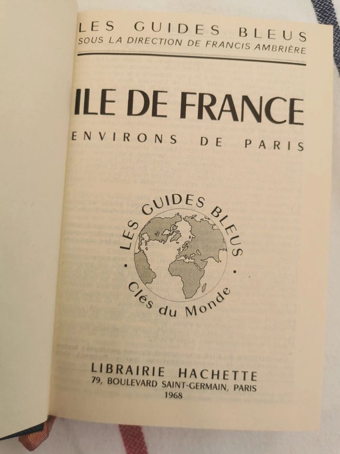 Vieux livre dans son emboitement cartonné et la protection plastifié, couverture rigide, en très bon état, comme neuf. Guides Bleus Ile de France environs de Paris, éd. Hachette, sous la direction de Francis Ambrière, ce guide a été refondu par François Monmarché, 1968, 856p., 500g. Belle pièce de collection, petit format. #guidesbleus #guide #iledefrance
