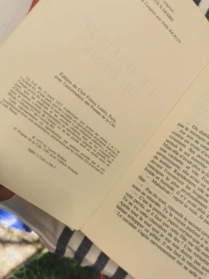 Laurie McBain, l'empreinte du désir, éd. France Loisirs, 1982, 345p., 422g. Livre au format broché, couverture rigide tachée et la tranche aussi, l’intérieur est en bon état. Un morceau de jaquette est collé à l’intérieur du livre. #lauriemcbain #lempreintedudesir