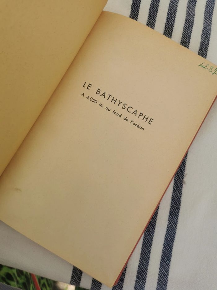Vieux livre Le Bathyscaphe à 4050m. au fond de l’océan, de Georges Huot et Pierre Willm, éd. de Paris, 1954, 191p., 528g. Livre illustré au format broché, couverture rigide en toile, compte tenu son ancienneté, en très bon état général, la couverture est un peu marquée. #lebathyscaphe #4050 #aufonddelocean #huot