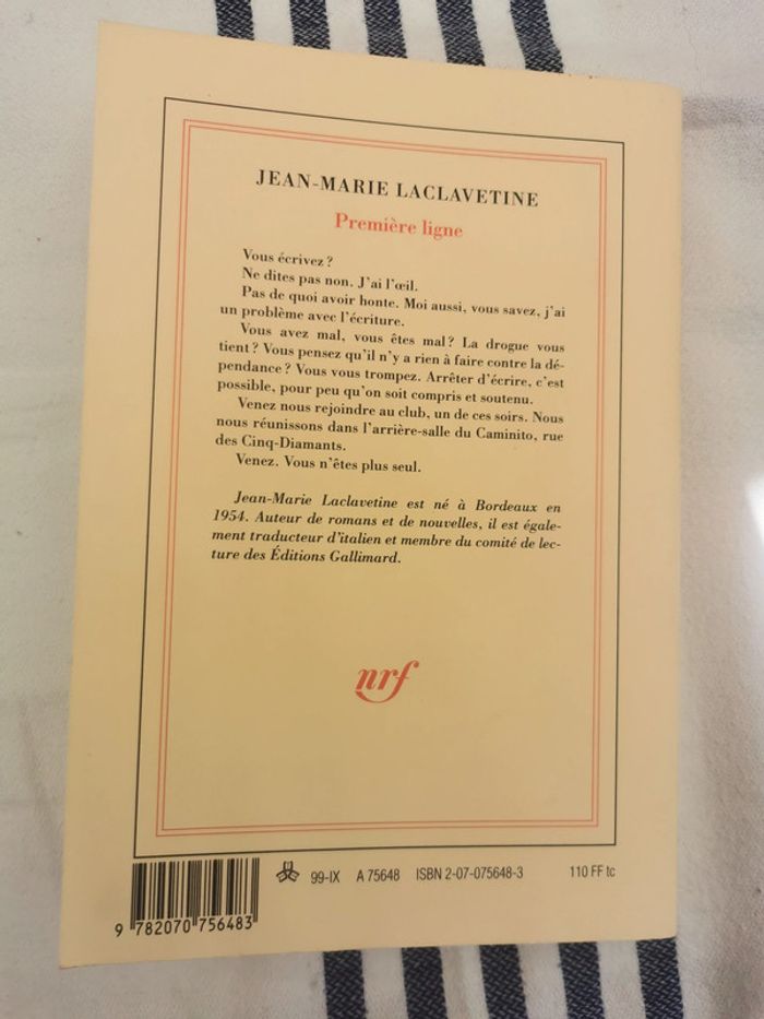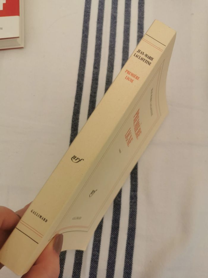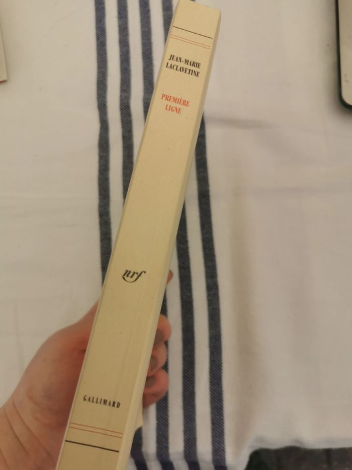 Première ligne, roman de Jean-Marie Laclavetine, éd. Gallimard, 1999, 24p., 324g. Livre est en bon état, format broché, couverture souple, dos cassé ce qui a causé la fragilité au niveau des pages 70-71, peuvent se détacher. #premiereligne #jeanmarielaclavetine #gallimard1999