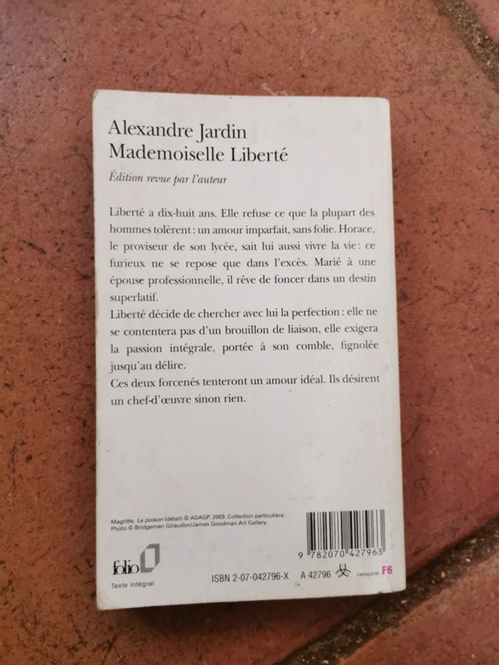 Mademoiselle Liberté, livre d'Alexandre Jardin, éd. folio, 2004, 240p., 160g. Livre est en très bon état général, jauni uniformément. #folio #jardin #alexandrejardin #mademoiselleliberte