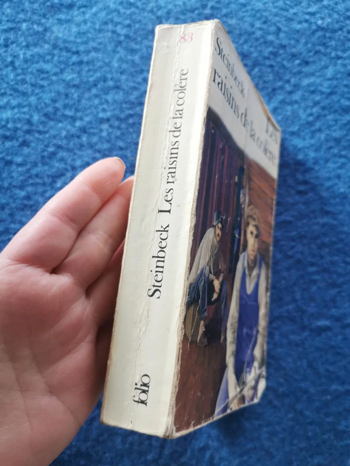 John Steinbeck, les raisins de la colère, é. folio, 1984, 631p., 345g. Livre au format poche, état satisfaisant, jauni, écriture à la première page, couverture est abîmée. #johnsteinbeck #lesraisinsdelacolere #livredepoche #folio