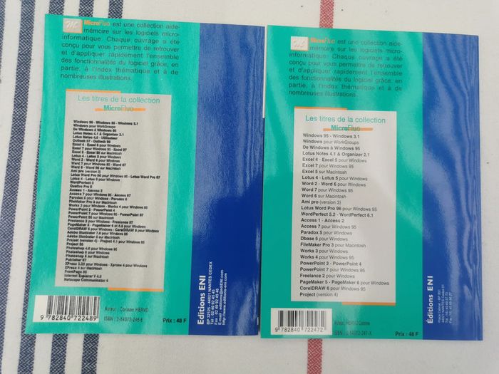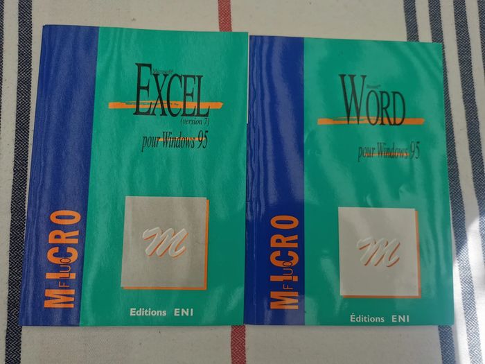Lot de 2 livres pour Windows 95 Microsoft Word et Excel, les livres sont neufs, éd. ENI, col. Micro fluo, le lot n'est pas dissociable et comprend : - Excel, version 7, 1995, 100p. - Word, 195, 98p. Poids du lot fait 312g. #lotdelivres #excel #word #microsoft #windows95