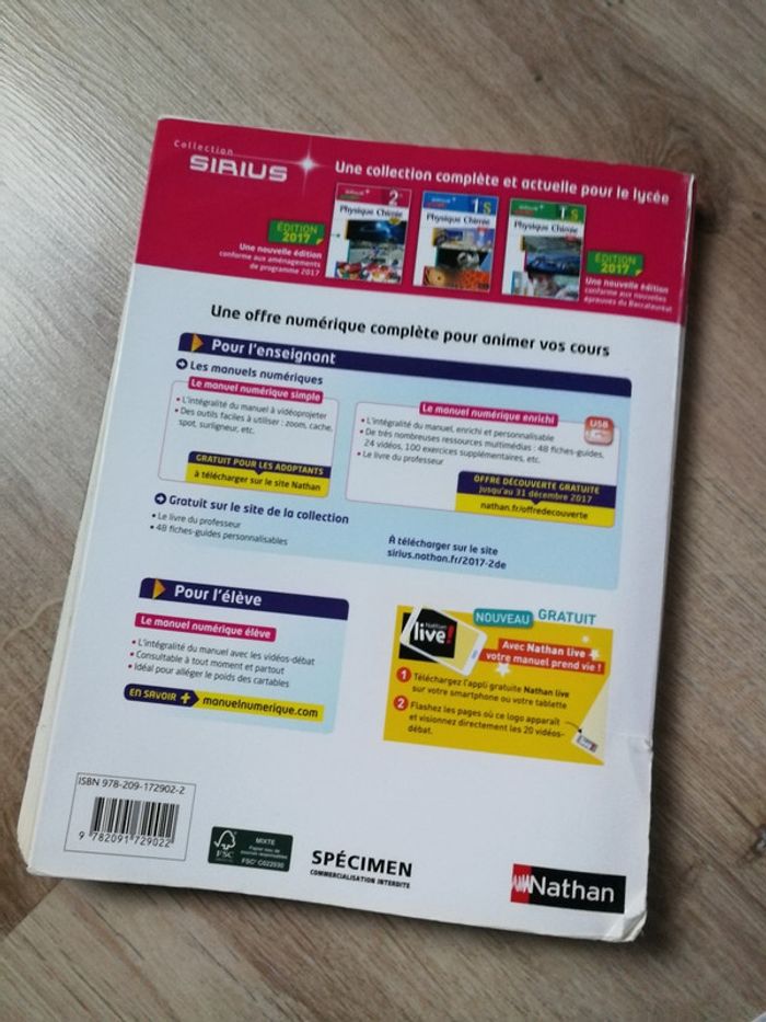 Physique. Chimie 2de édition 2017. Cahier pysique, chimie conforme aux aménagements de Programme 2017, collecton Srius, éd. Nathan, 2017, 507g., 351p. Cahier est en très bon état général, sauf une page - un coup de syl à la page 181, la couverture est déchirée, l'intérieur est en très bon état général #physique2017 #chimie2017 #cahierchimie #cahierphysique