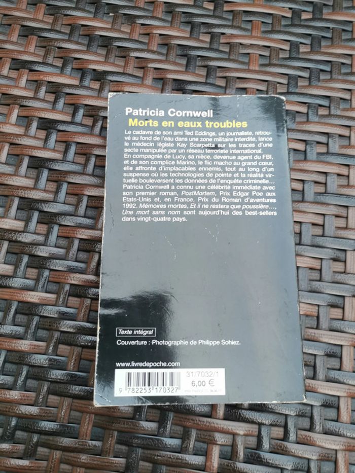 Patricia Cornwell, morts en eaux troubles. Livre de poche, 2002, 327p., 174g. Le livre est bon état général, couverture a des pliures. #patriciacornwell #mortseneauxtroubles #livredepoche