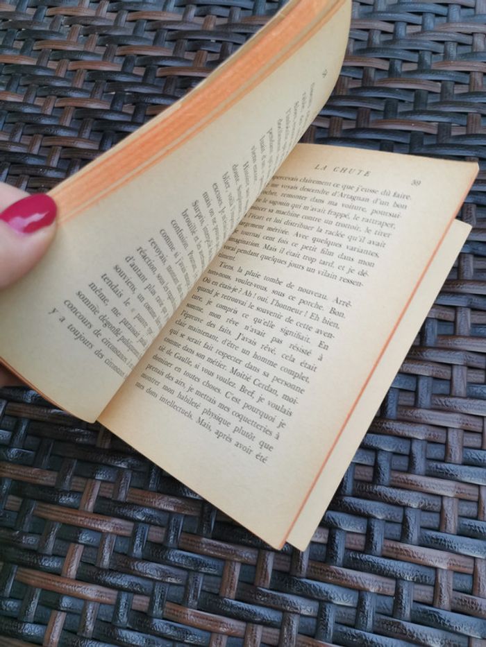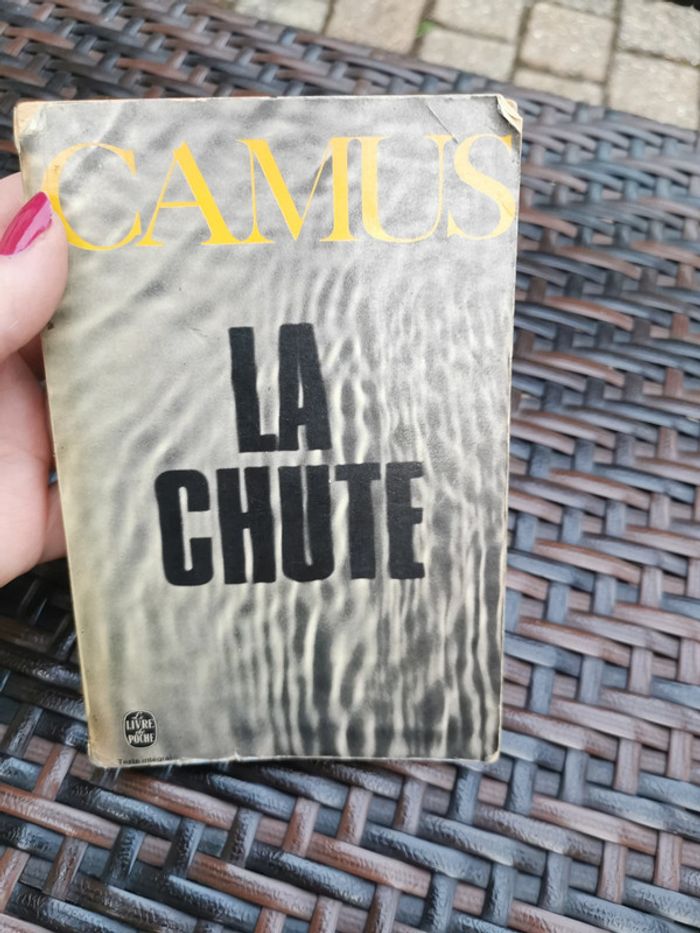Camus, la chute, livre de poche, 1968, 160p., 114g., état satisfaisant, défraichi, couverture marquée, les écritures à la première et dernière pages. #camus #lachute