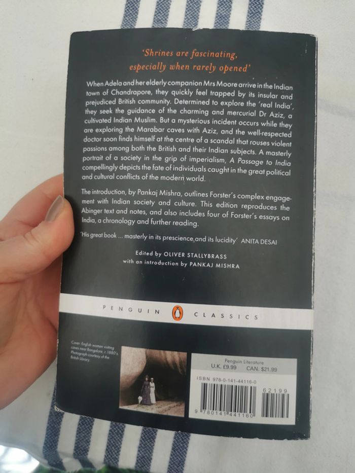 E.M. Forester, A Passage to India, with an introduction by Pankaj Misha, éd. Pinguin books/Pinguin Classics, 2005, 376p., 313g. Le livre est au format broché, en anglais en bon état, couverture est marquée, le livre comporte beaucoup d'annotations au crayon et au stylo. #livreenanglais #apassagofindia #pinguinclassics