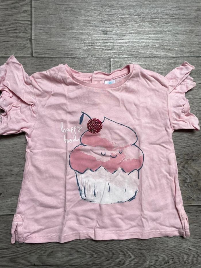 Tshirt rose volants manches courtes Cupcake Tex 9 mois - photo numéro 1