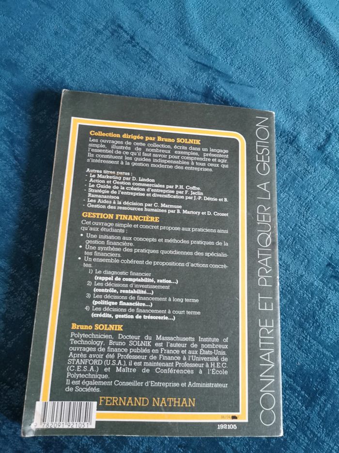 Gestion Financière de Bruno Solnik, nouvelle édition, éd. Fernand Nathan. Connaitre et pratiquer la gestion, 1986, 189p., 185g. Livre au format broché, couverture souple, livre vintage RARE, en très bon état général, une tache sur la couverture. #gestionfinanciere #brunosolnik