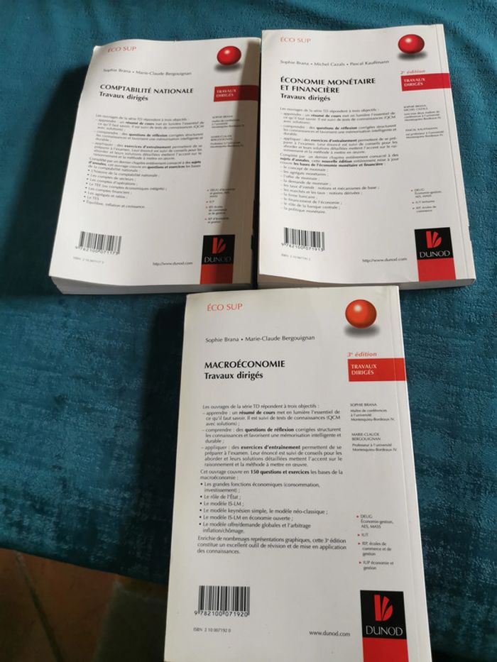 Lot de 3 livres Travaux dirigés, éd. Dunod Comptabilité, économie et macroéconomie