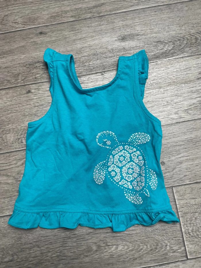 Débardeur turquoise Avec volants Ouverture dos Sergent major 3 ans Motif tortue avec paillettes Porté 1 fois impeccable Fille 3 ans #ingridblogmode3ans