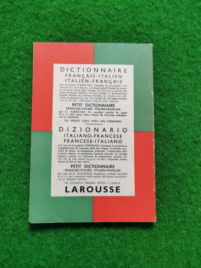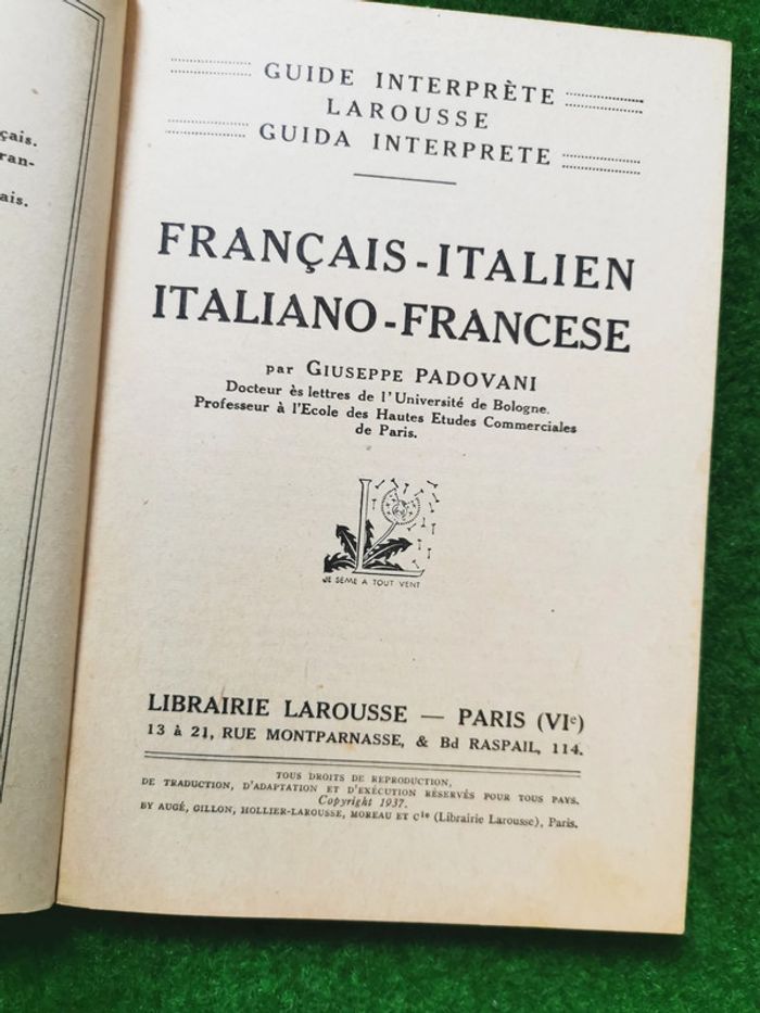 Guide interprète Français-Italien. Guida interprete Larousse Italiano-Francese, 1937, 110p., 80g. Petit livre de poche, couverture souple, ancien, en très bon état. #guideinterprete #francaisitalien #guidainterprete #italianofrancese #livreancien #larousse #livre1937