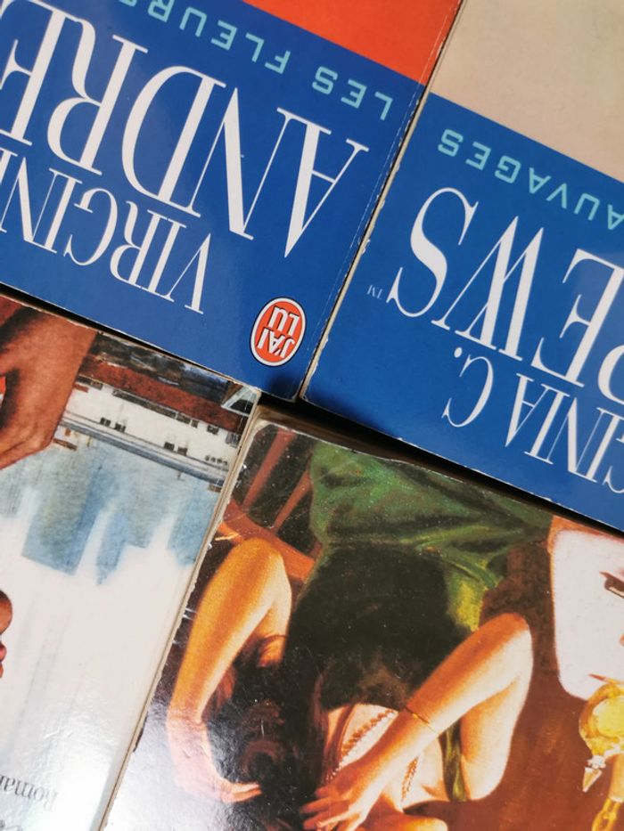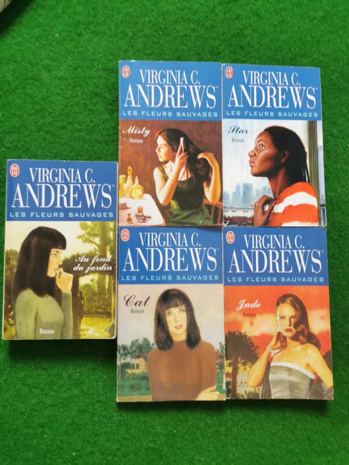 Les fleurs sauvages, saga de Virginia C. Andrews, non dissociable, complète. Les livres sont au format poche, éd. J'ai lu, présentent quelques jaunissements, mais restent en très bon état général. La saga comprend 5 tomes : Misty, Star, Jade, Cat, au fond du jardin. Poids 593g. Malgré les destins pas toujours faciles de ces 4 filles, le dernier tome est assez "drôle" on sent que l'autrice aime ces personnages et s'amuse lorsqu'elle écrivait cette saga. #virginiacandrews #saga #lesfleurssauvages #sagaandrews