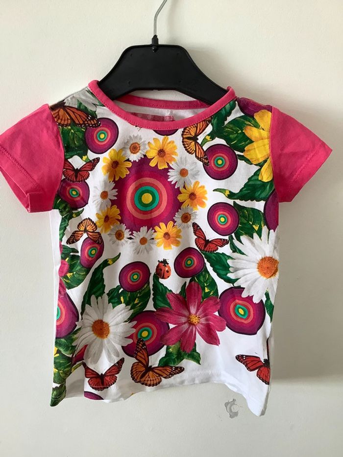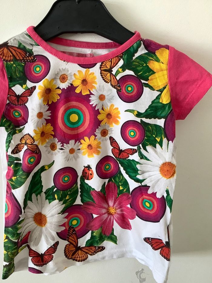 Tshirt Desigual 18 mois rose fushia fleurs marguerites papillons - photo numéro 1