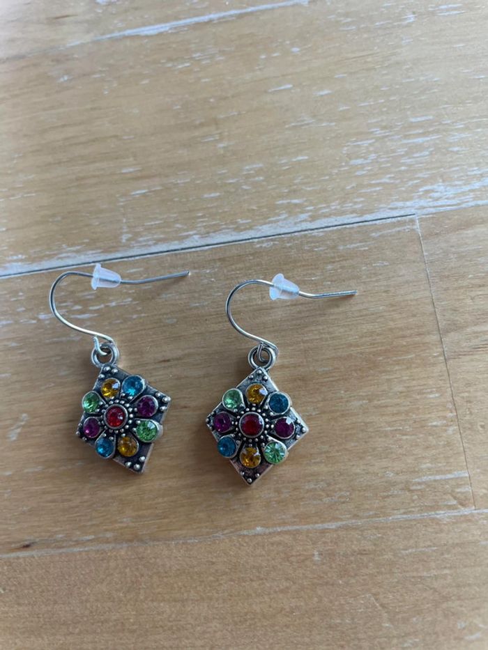 Boucles d’oreilles argentées strass multicolores neuf - photo numéro 1