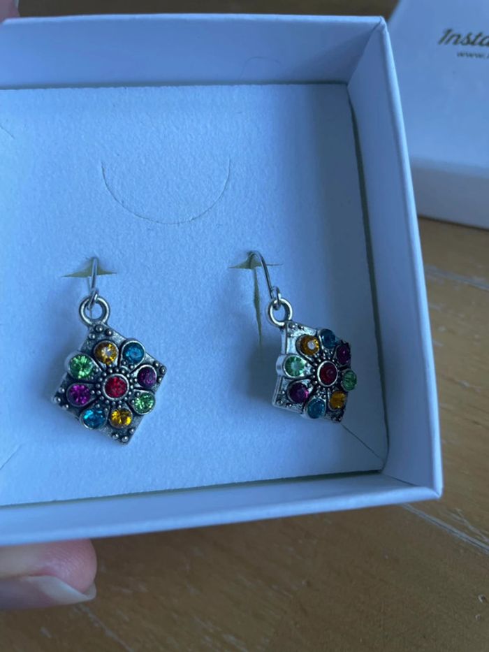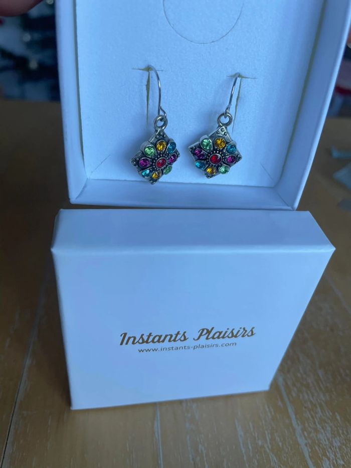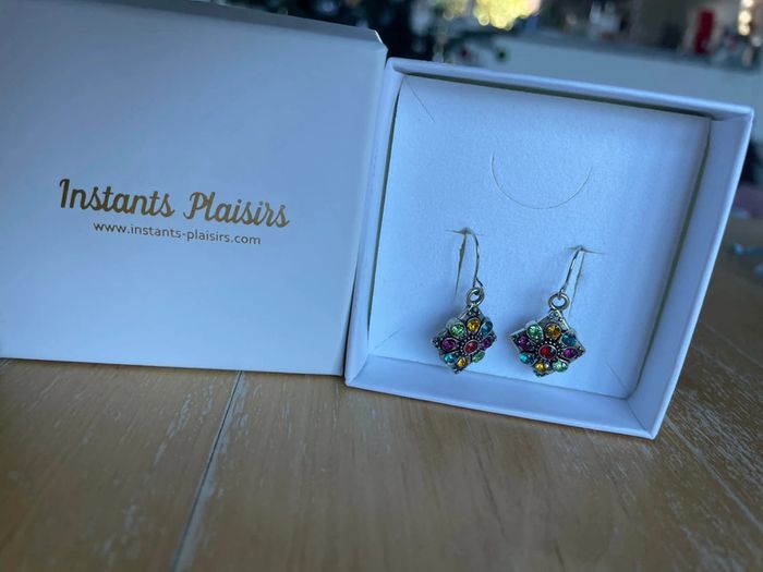 Boucles d’oreilles argenté (pas en argent) Strass de couleurs Marque : instants plaisirs neuve dans la boite Bijoux #ingridblogmodebijoux Tout est classé par catégorie / taille… en haut du dressing dans « À propos » 📦 Envoi soigné 🏠 Non fumeur 📍Pas d’envoi le lundi: point relais fermé