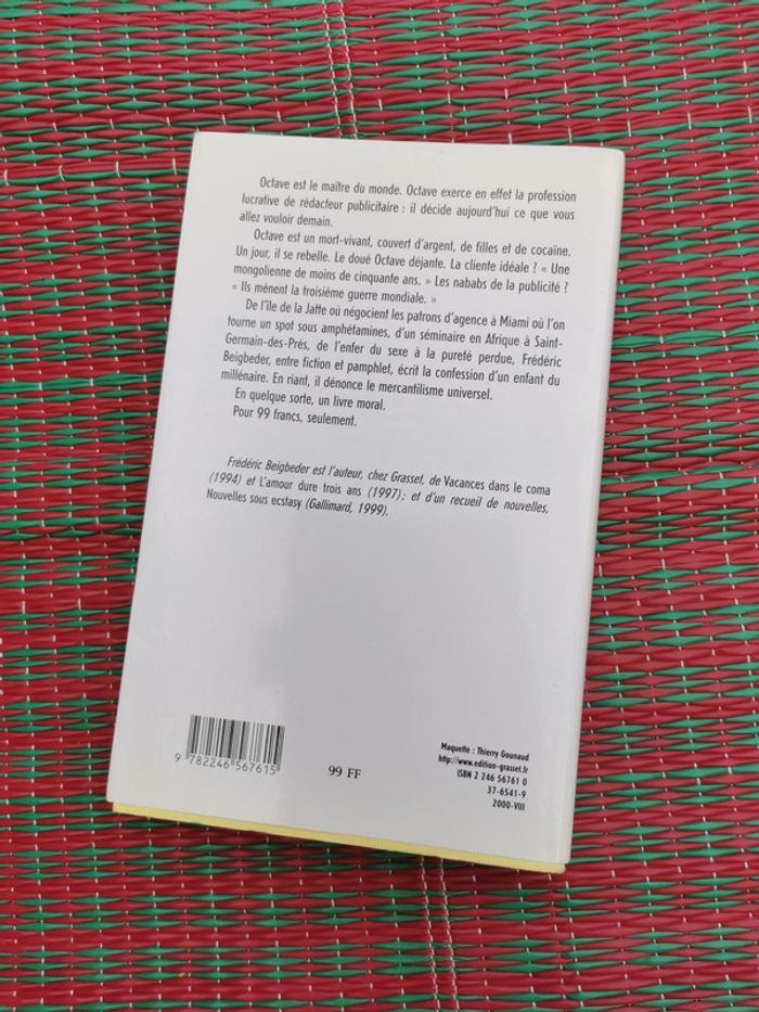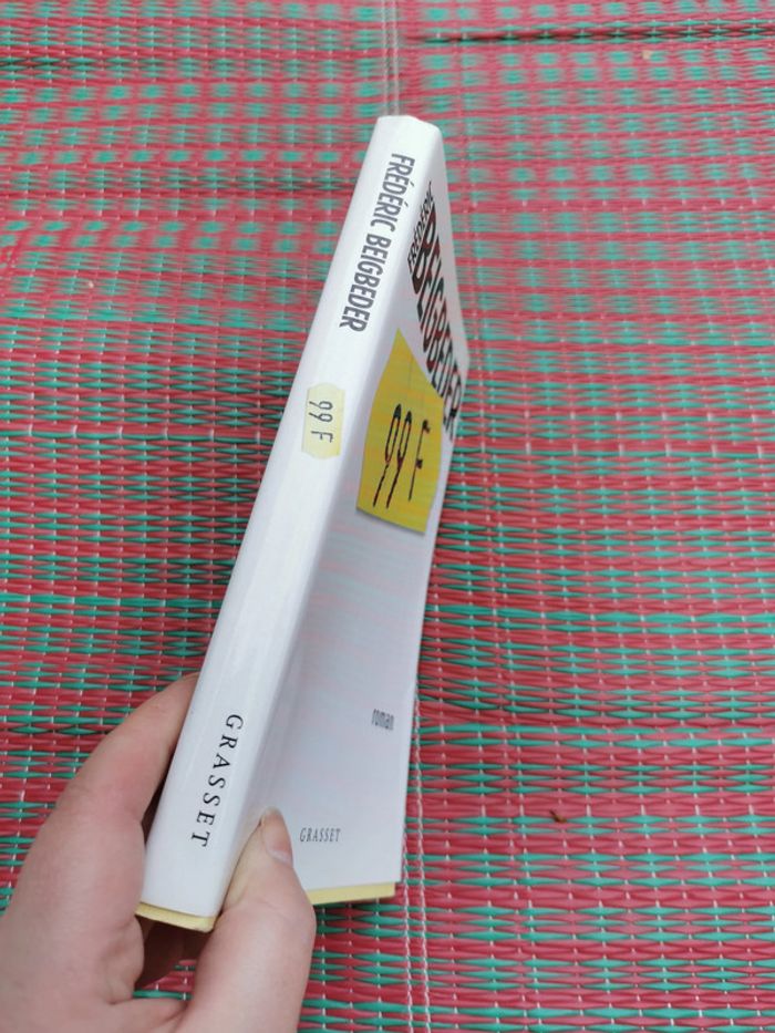Roman de Frédéric Beigbeder, 99 F, éd. Grasset, 2000, 281p., 292p. Le livre est en bon état général, neuf, mais comporte des taches de jaunissement, n’a jamais été ouvert. #roman #livre #fredericbeigbeder #99f #grasset