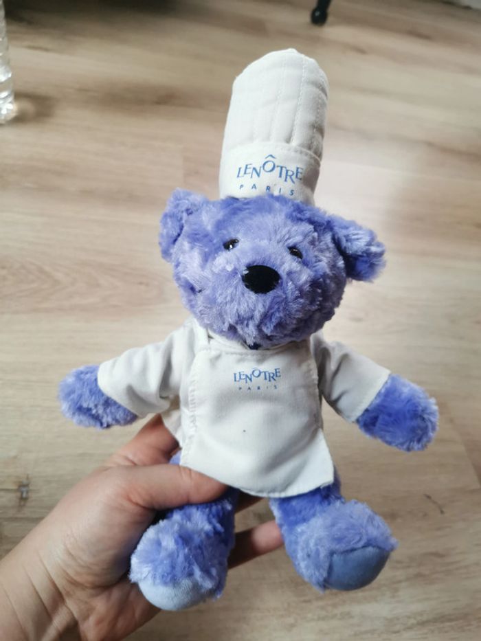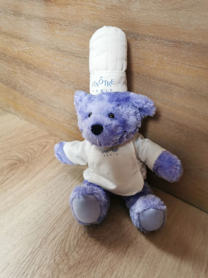 Peluche ours violet LeNôtre Paris, très doux, avec les yeux en plastique et le nez en velours, neuf, sans étiquette. Belle peluche de collection, ou un joli clein d'oeil pour les amoureux de la pâtisserie. Taille 27cm, poids 100g. #pelucheviolet #peluchelenotre #lenotre #ourseviolet #peluchedecollection