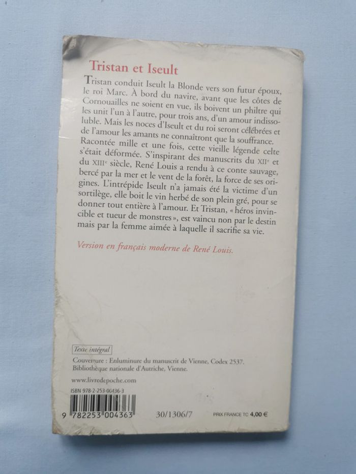 Livre de poche Tristan et Iseult, col. Classiques de poche, 2006, 252p., 138g. Bon état général, le livre a la couverture marquée, jaunie et taché sur la tranche. #tristanetiseult #livreclassique #livredepoche