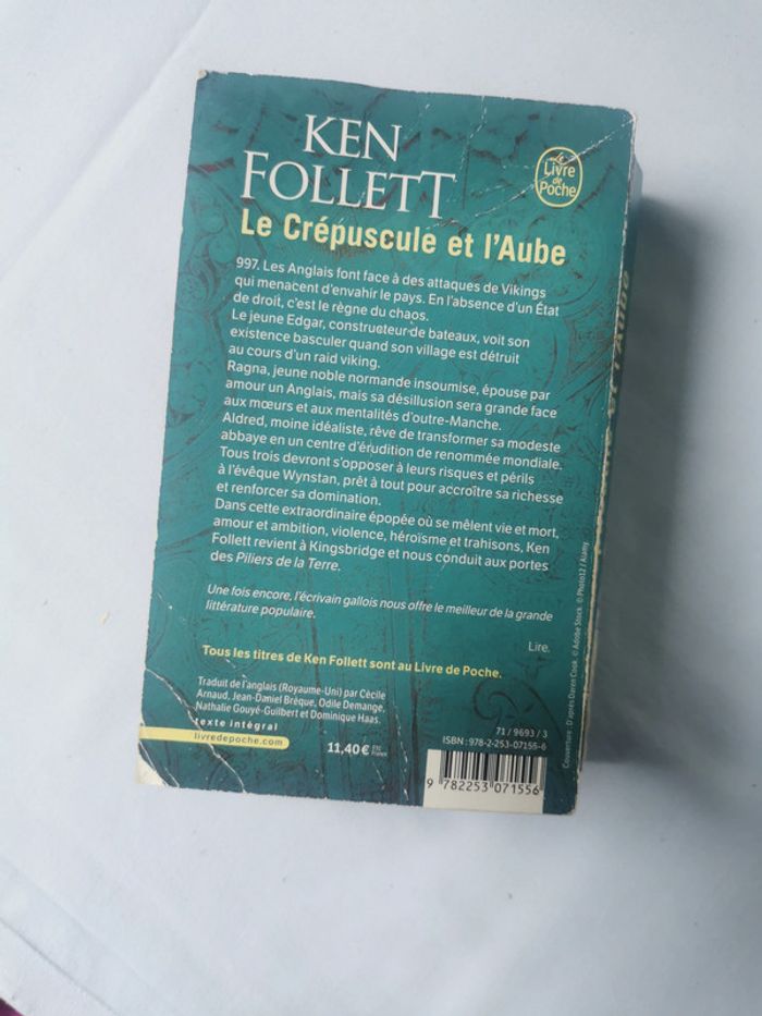 Ken Follett, le Crépuscule et l’Aube, avant les Piliers de la Terre, livre au format et éd. poche, 2022, 1019p., 522g. Le livre est en bon état général, la couverture est marquée et les pages sont jaunies partiellement. #kenfollett #lecrepusculeetlaube #lespiliersdelaterre