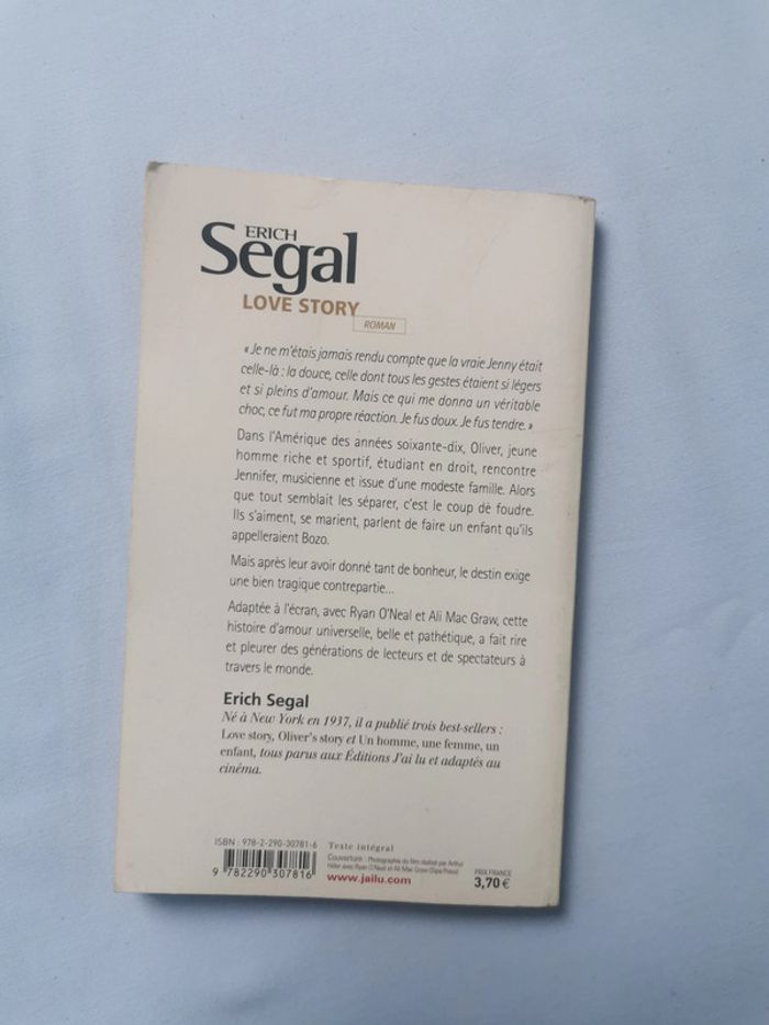 Roman Love story, livre d’Erich Segal, format poche, éd. J’ai lu, 2007, 123p., 87g. Le livre est en très bon état général, la couverture est un peu marquée. #segalerich #roman #lovestory