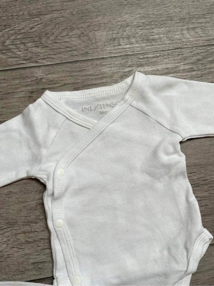 Lot 3 body blanc ouverture devant coeur rose in extenso 56 cm 1 mois - photo numéro 7