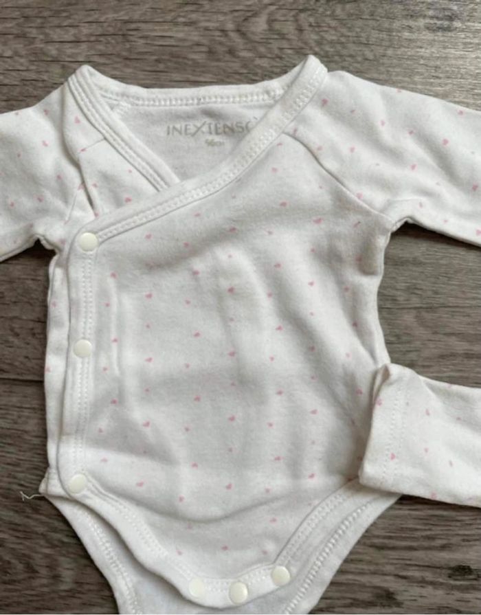 Lot 3 body In extenso56 cm / 1 mois Ouverture devant Motif coeur rose Fille 1 mois #ingridblogmode1mois Bodies: #ingridblogmodebodies 📦 Envoi soigné 🏠 Non fumeur