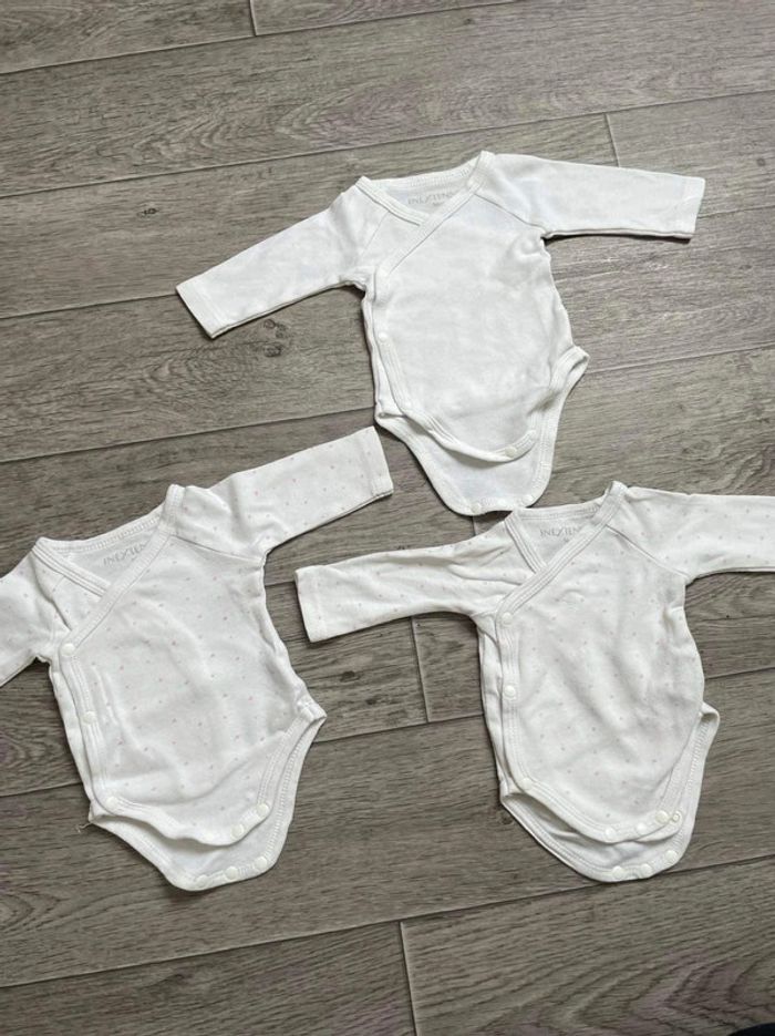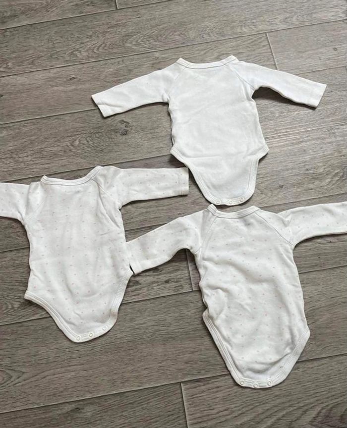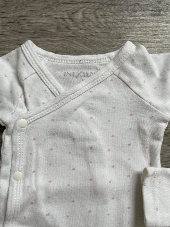 Lot 3 body blanc ouverture devant coeur rose in extenso 56 cm 1 mois - photo numéro 3