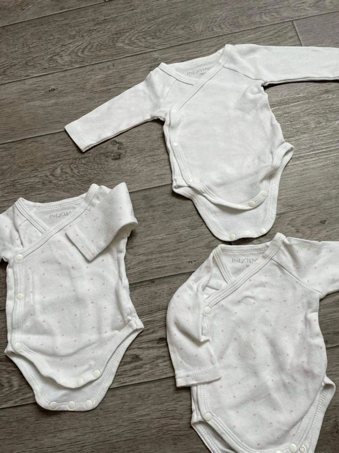 Lot 3 body blanc ouverture devant coeur rose in extenso 56 cm 1 mois - photo numéro 1