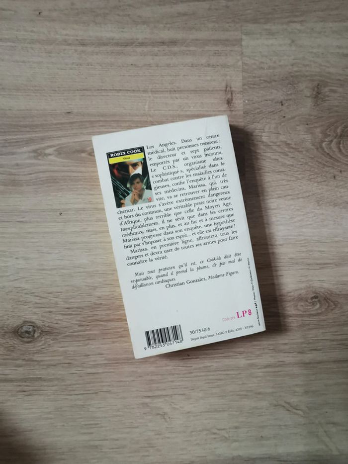Virus, livre de Robin Cook, éd. Livre de poche, 1996, 315p., 164g. Le livre au format poche, tranche colorée, en très bon état général. #virus #livredepoche #robincook #livre1996
