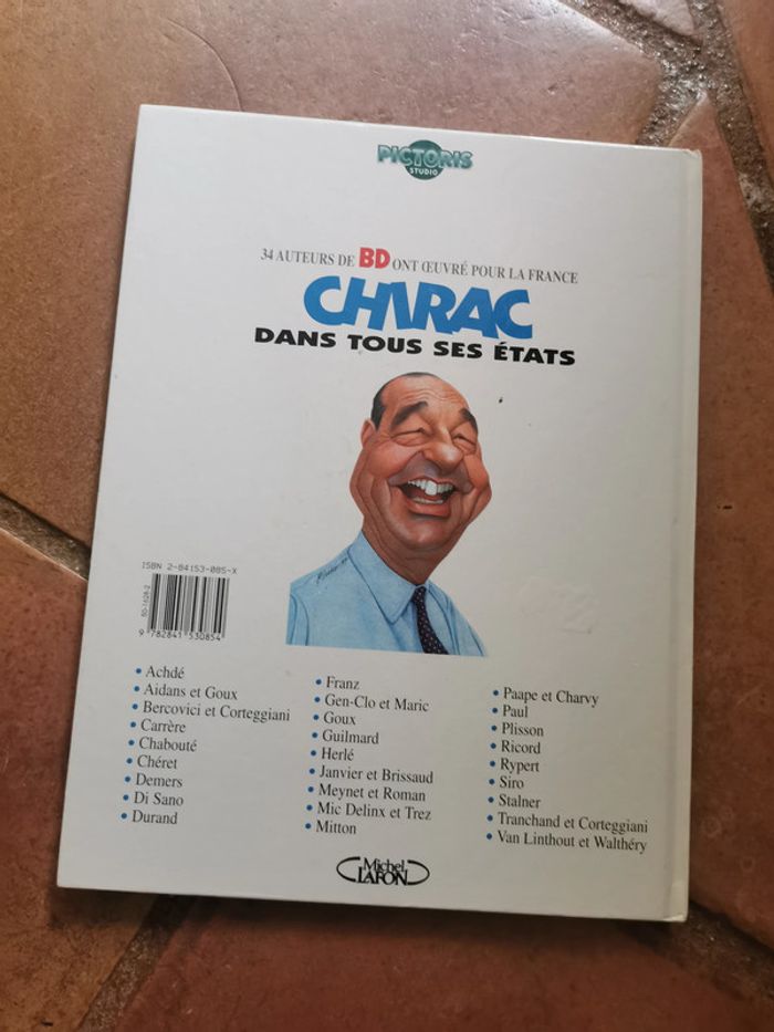BD Chirac dans tous ses états. 34 auteurs de BD ont œuvré pour la France, 50p., 430g. Neuf. Pensez à faire des lots afin de bénéficier des remises que j'ai régulièrement sur ma page. #bdneuf #chirac #bdpolitique #chiracdanstoussesetats #bdchirac #bandedessineee