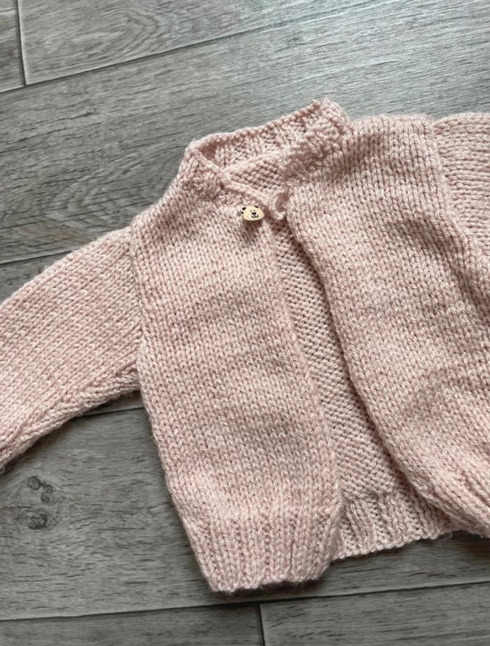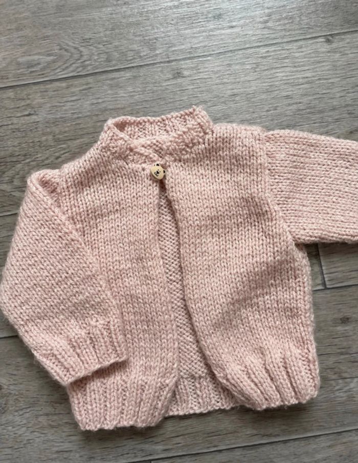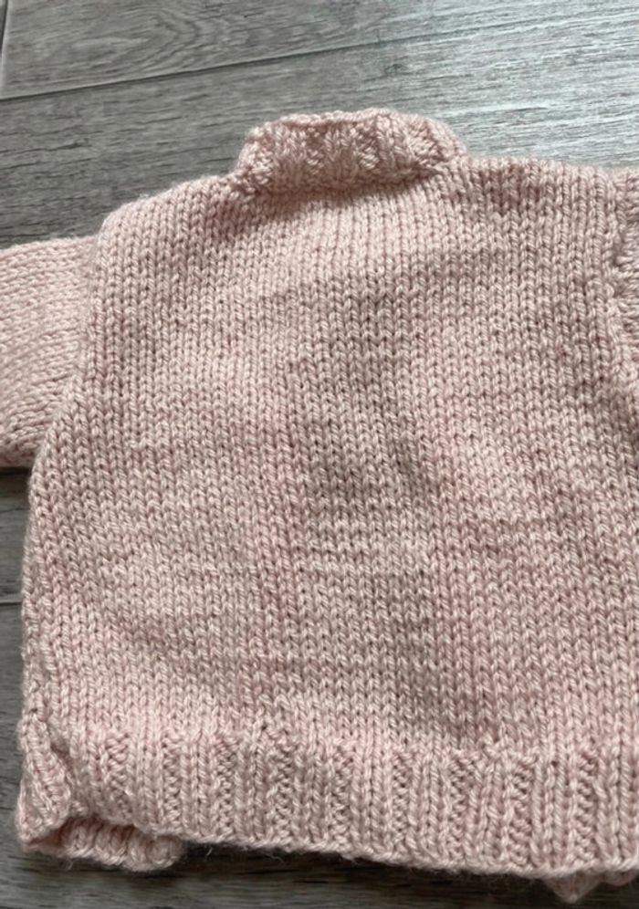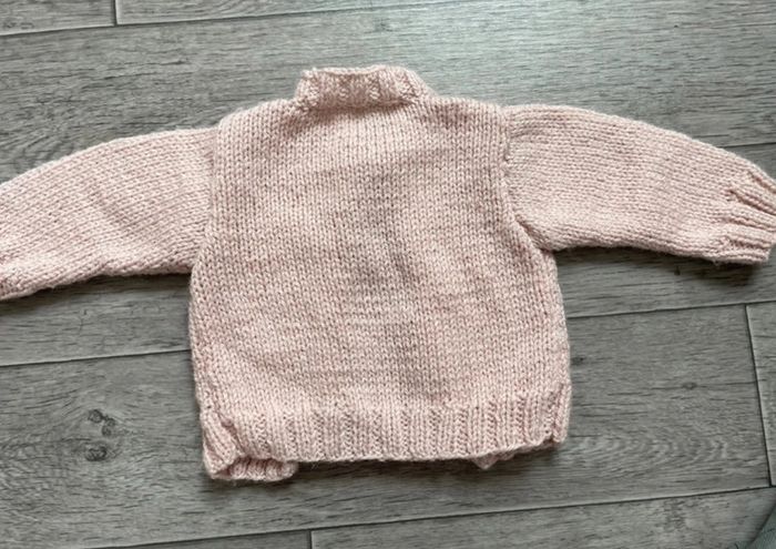 Gilet laine tricotée main rose pastel 9 mois - photo numéro 1