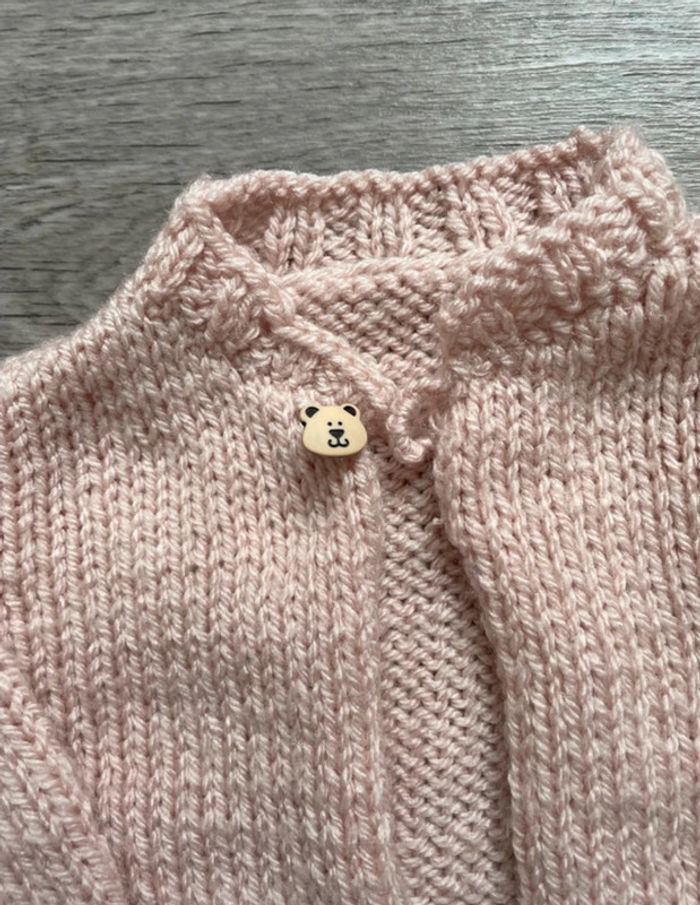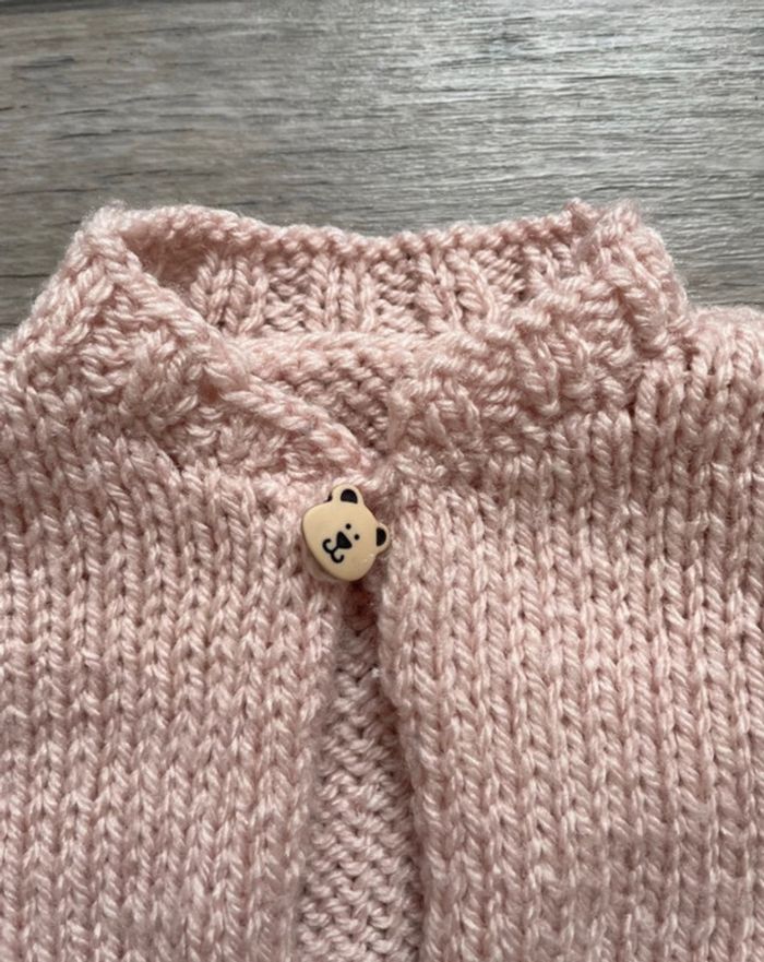 gilet laine tricoté main taille 9 mois peu porté rose poudre bouton ourson Fille 9 mois #ingridblogmode9mois 📦 Envoi soigné 🏠 Non fumeur