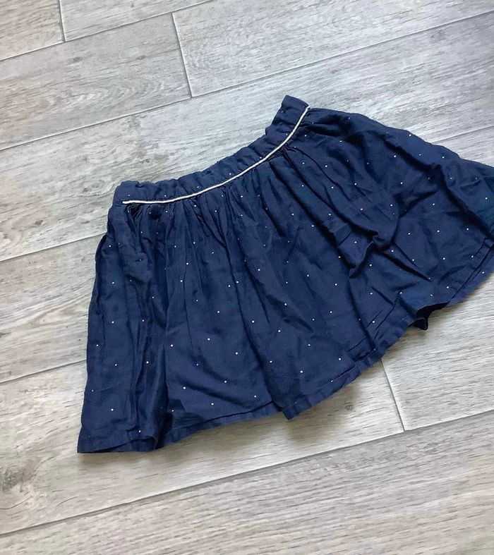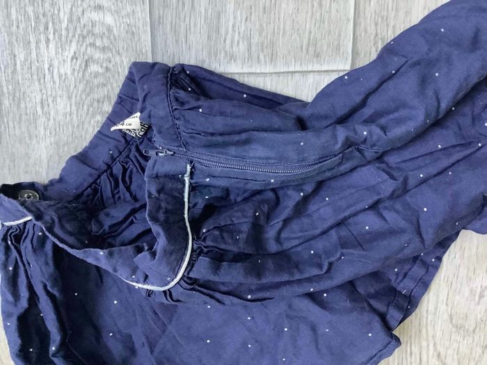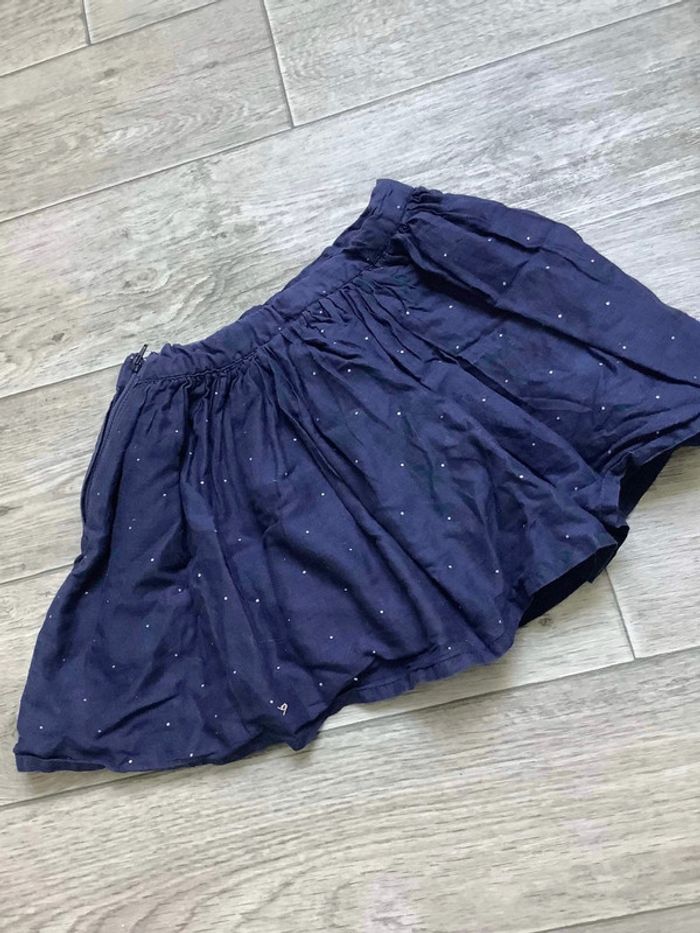 Jupe bleu marine Pois et liserés argenté Fermeture éclair invisible sur le coté Bouton taille réglable TAO tape à l’œil 4 ans Très bon état Fille 4 ans #ingridblogmode4ans 📦 Envoi soigné 🏠 Non fumeur