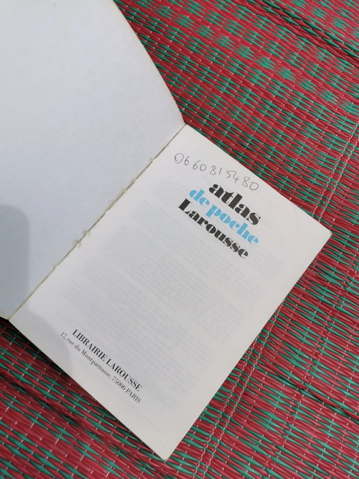 Atlas de poche, édition Larousse, 1982, 344p., 366g. Le livre est en bon état général, l'écriture à la première page, la colle de couverture est visible et la couverture est marquée. Pensez à faire des lots afin de bénéficier des remises que j'ai régulièrement sur ma page. #atlasdepoche #atlas #larousse