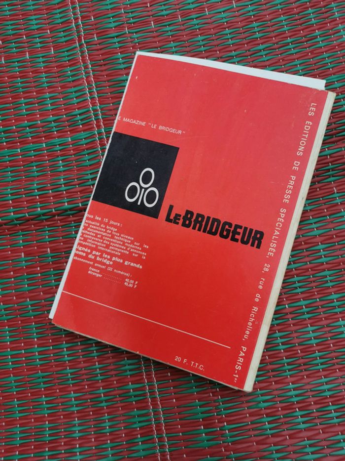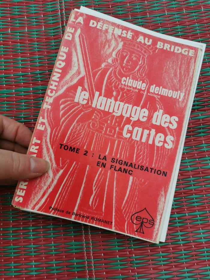 Le langage des cartes, tome 2 la signalisation en flanc, livre de Claude Delmouly, champion du monde. Série art et technique de la défense au bridge, éd. de presses spécialisée, 1969, 150p., 156g. Le livre est en état satisfaisant, les pages se sont séparées de la couverture, comporte des traces de vieux scotch. Pensez à faire des lots afin de bénéficier des remises que j'ai régulièrement sur ma page. #carteajouer #manuelbridge #bridgetechniques #claudedelmouly