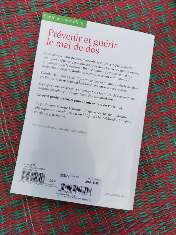 Prévénir et guérir le mal de dos, livre de Pr Claude Hamonet, éd. Odile Jacob, santé au quotidien, 2007, 176p., 302g. Le livre est neuf! Pensez à faire des lots afin de bénéficier des remises que j'ai régulièrement sur ma page. #preveniretguerir #lemaldedos #claudehamonet #odilejacob #livresante #bienetre