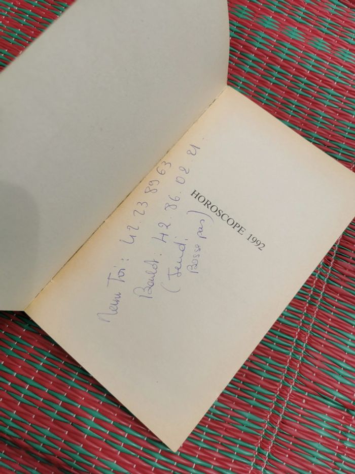 Didier Derlich Horoscope 1992 Lion 23 juillet - 23 août, éd. Hachette carrere, 1991, 127p., 90g. Livre de poche RARE, quasiment introuvable, en bon état, présente les jaunissement et l'écriture à la première page. Pensez à faire des lots afin de bénéficier des remises que j'ai régulièrement sur ma page. #horoscope #livrehoroscope #livrelion #lion1992 #lionhoroscope