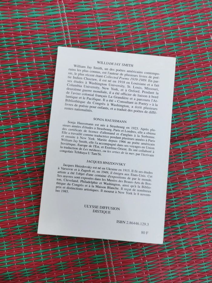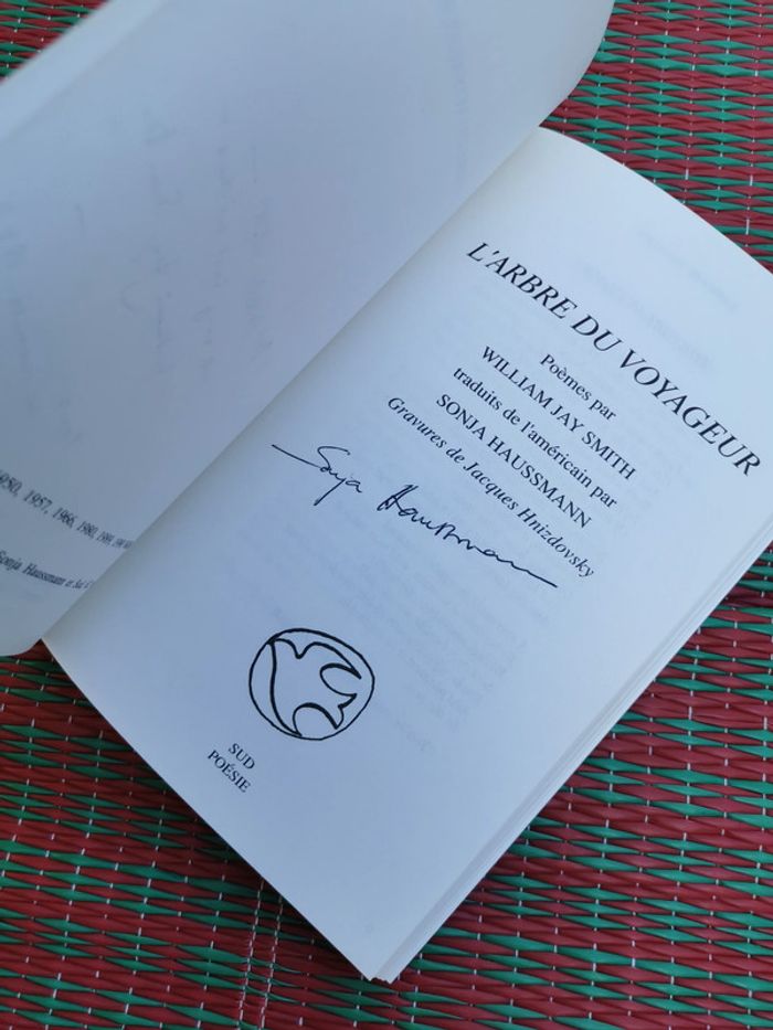 L'Arbre du Voyageur, poèmes par William Jay Smith, traduits de l'américain par Sonja Haussmann, gravures de Jacques Hnizdovsky, éd. Sud poésie, publié avec le concours du Centre National des Lettres,1990, 93p. Le livre est neuf, mais dédicacé et la couverture est légérement marquée. Pensez à faire des lots afin de bénéficier des remises que j'ai régulièrement sur ma page. #poemes #williamjaysmith #larbreduvoyageur