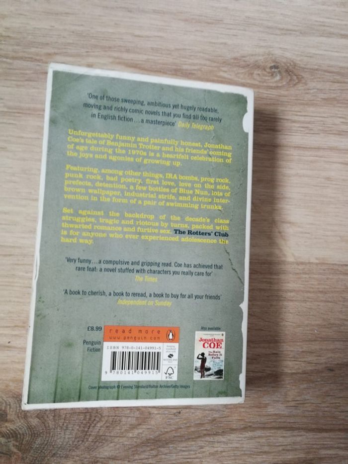 Jonathan Coe, The Rotters' Club. Bestselling author of What a Carve Up!, éd. Penguin books, 2008, 404p., 185g. Le livre est en anglais, en bon état général, couverture souple marquée, les pages jaunies. Pensez à faire des lots afin de bénéficier des remises que j'ai régulièrement sur ma page. #jonathancoe #therottersclub #livreanglais #englishbook