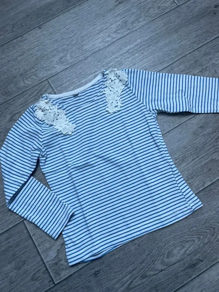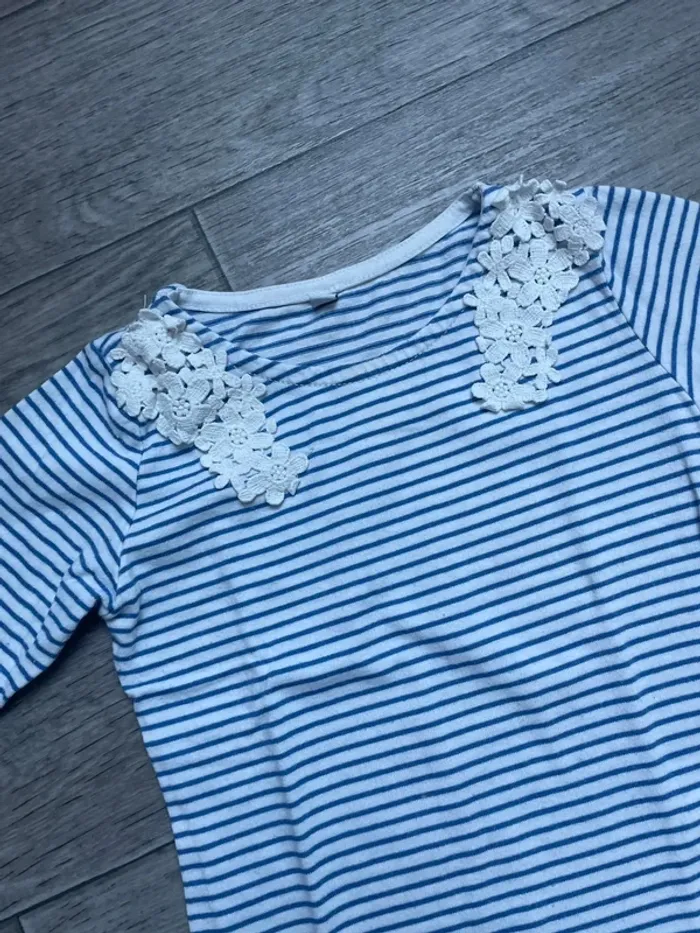 Tshirt marinière broderie / guipure blanche 3 ans Sans marque Peu porté Vêtements 3 ans #ingridblogmode3ans 📦 envoi soigné Point relais fermé le lundi