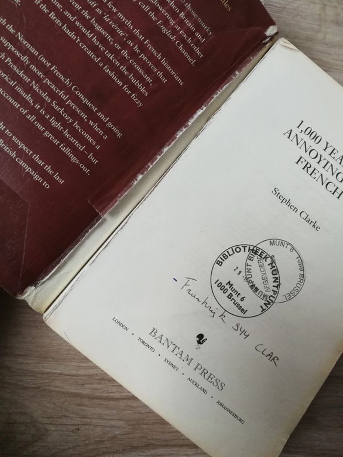 Stephen Clarke, 1000 years of annoying the french. Bestselling author of A year in the merde, éd. Bantam press, 2010, 541p., 750g. Livre en anglais, de bibliothèque, état satisfaisant, la couverture est décollée, la dernière page qui est sans texte a été coupée dans le coin, les coins sont en parti marqués. Pensez à faire des lots afin de bénéficier des remises que j'ai régulièrement sur ma page. #livreenanglais #stephenclarke #1000yearsofannoyingthefrench #ayearinthemerd #bantampress #englishbook