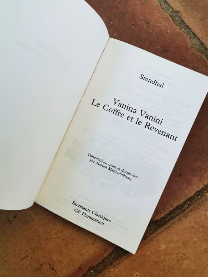 Stendhal, Vanina Vanini. Le Coffre et le Revenant, éd. GF Flammarion, collection Etonnants Classiques, 2002, 108p., 119g. Le livre au format poche, en très bon état général, la couverture est légérement marquée. Pensez à faire des lots afin de bénéficier des remises que j'ai régulièrement sur ma page. #stendhal #vaninivanini #lecoffreetrevenant #flammarion