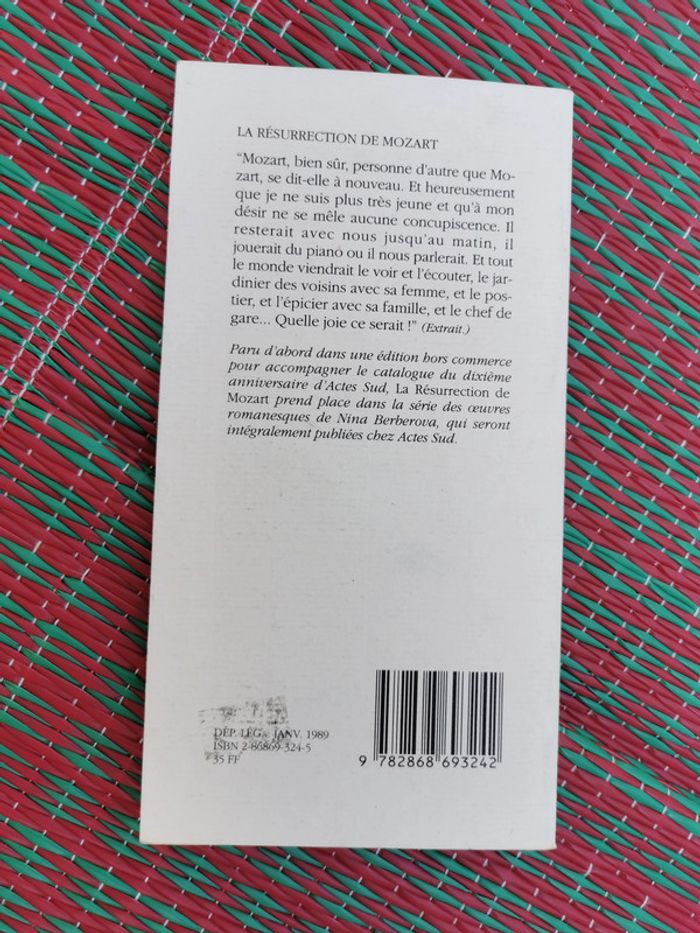 La Résurrection de Mozart, livre de Nina Berberova, éd. Actes Sud, 1989, 46p., 48g. Le livre est en très bon état général. Pensez à faire des lots afin de bénéficier des remises que j'ai régulièrement sur ma page. #laresurrection #mozart #laresurrectiondemozart #ninaberberova #actessud