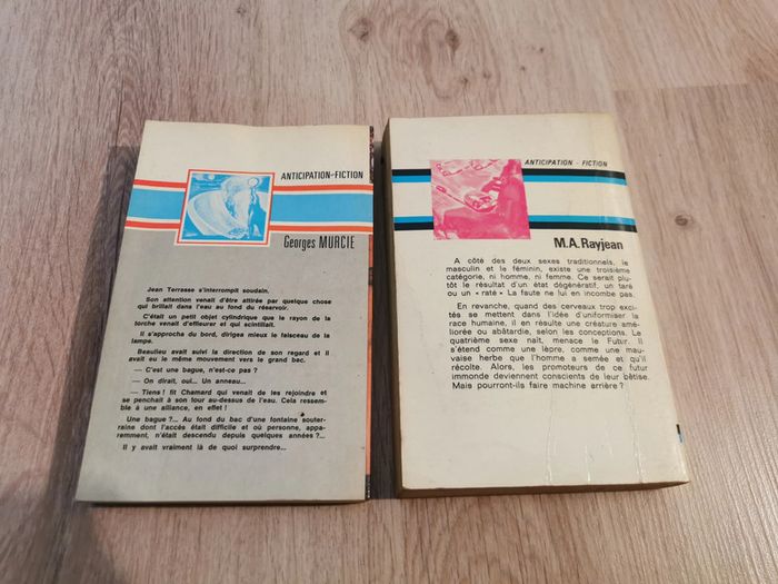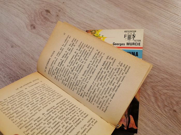 Lot de 2 livres Fleuve Noir collection Anticipation fiction, bon état général, compte tenu leur âge. Les livres sont jaunis et les couvertures sont un peu marquées par les plis. Le lot n'est pas dissociable et comprend : 1. Le quatrième futur, M.A. Rayjean N°333, 1967, 249p. 2. Les hybrides de Michina, Georges Murcie, N°686, 1975, 221p. Poids du lot 302g. Pensez à faire des lots afin de bénéficier des remises que j'ai régulièrement sur ma page. #fiction #lotdelivres #fleuvenoir #anticipation